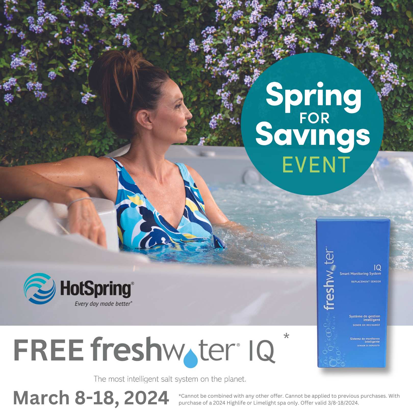 Hot Spring: Free Freshwater IQ Smart Salt Water System with purchase of a 2024 HotSpring Highlife or Limelight Salt Water hot tub.